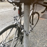 High end bike and lock, unfortunately, lock is only looped to the seat-post which can be easily slipped over the parking meter and saddle.