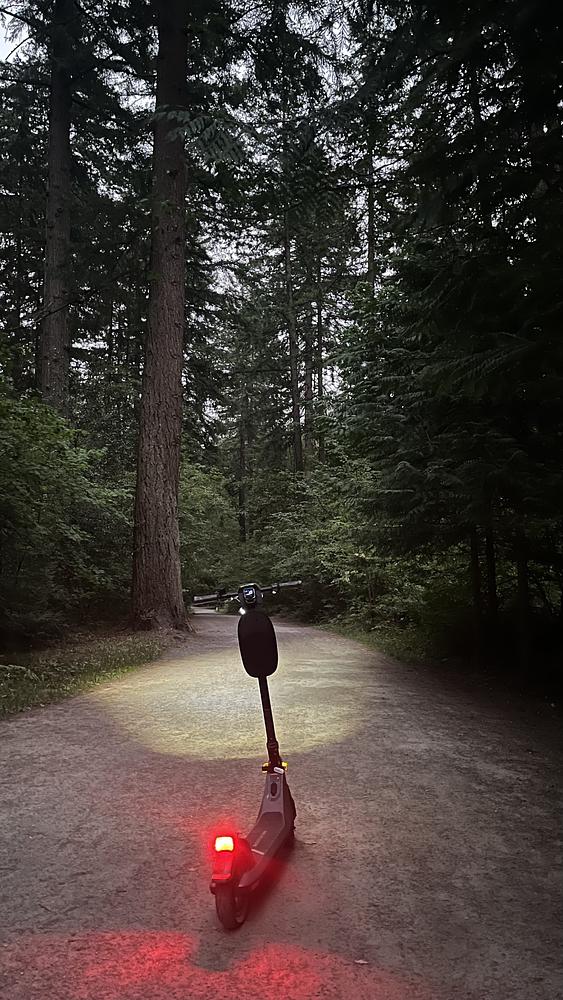 a strap that lights up yellow orange at the front bottom of the neck of the scooter that says BALLARD
