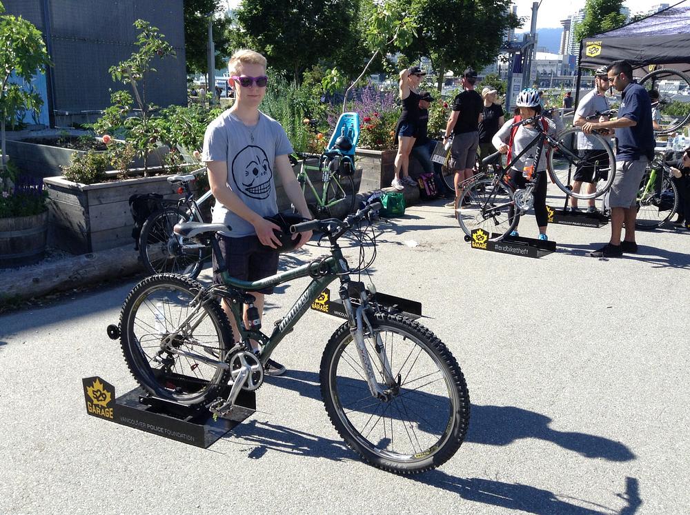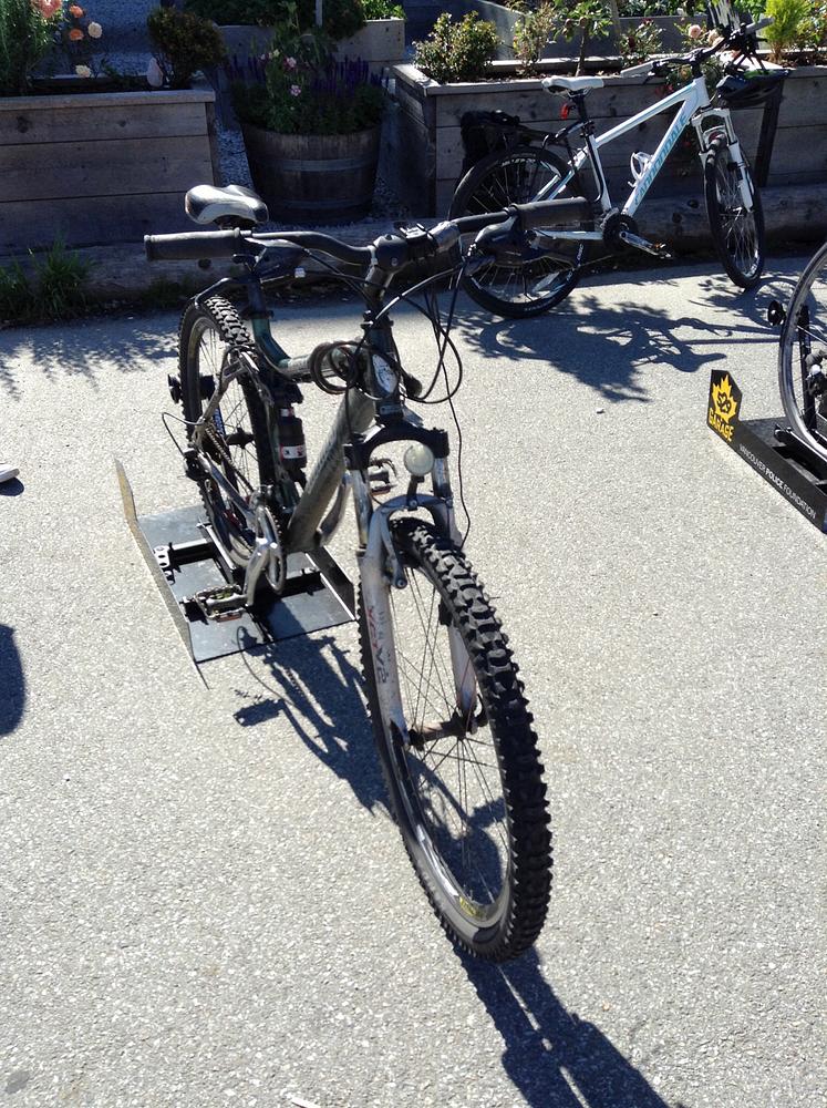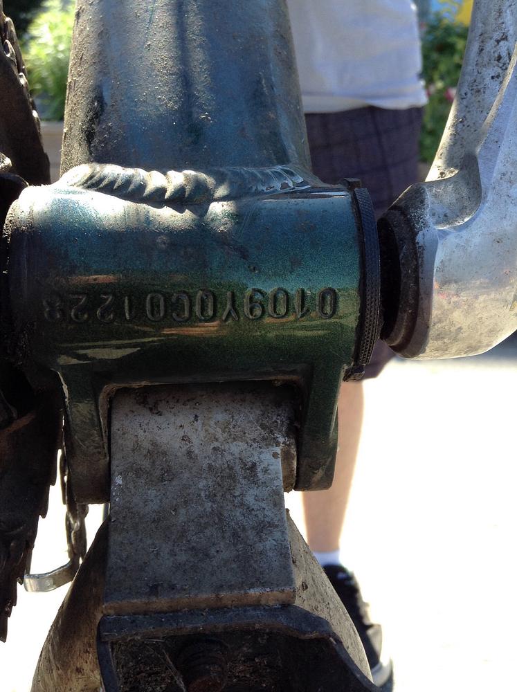 It's a dark green mountain bike