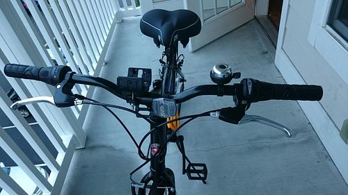 There is Garmin GPS mount on right of handle bar, and bike ring on the left
