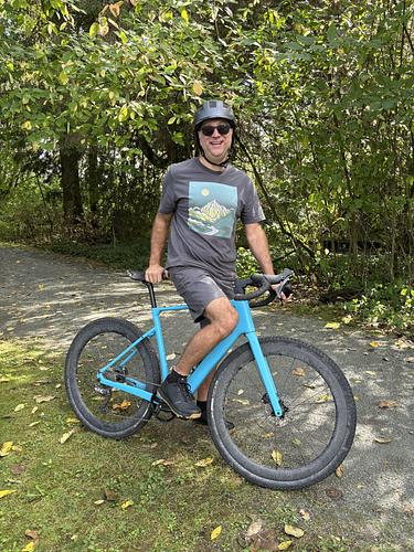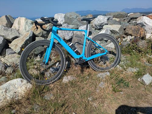 This bike is a 1 of 1 and should be easy to spot, there are no decals and it is electric blue. It is a Gravel E-Bike. You will notice the frame and colour first, then notice a mid-drive motor with no visible battery.