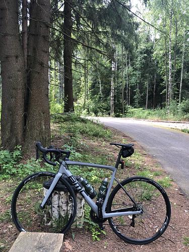 Had Wahoo computer standard mount and Knog PWR mount on the handlebars, garmin rtl510 mount under the seat, Elite bottle cages, Apidura food bag 0.8L and topeak dynawedge bag under the seat.
