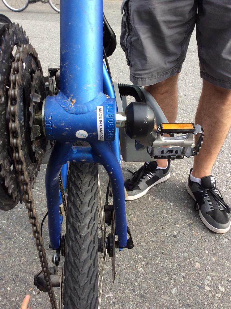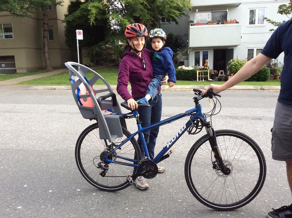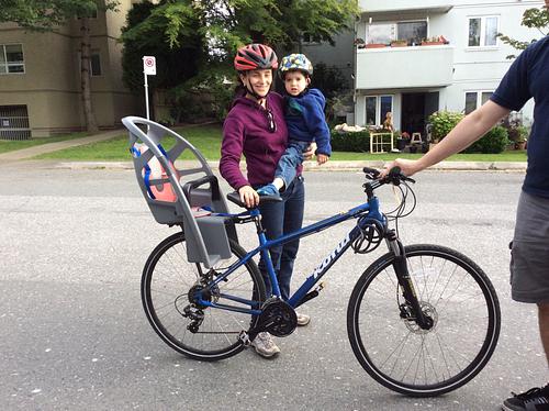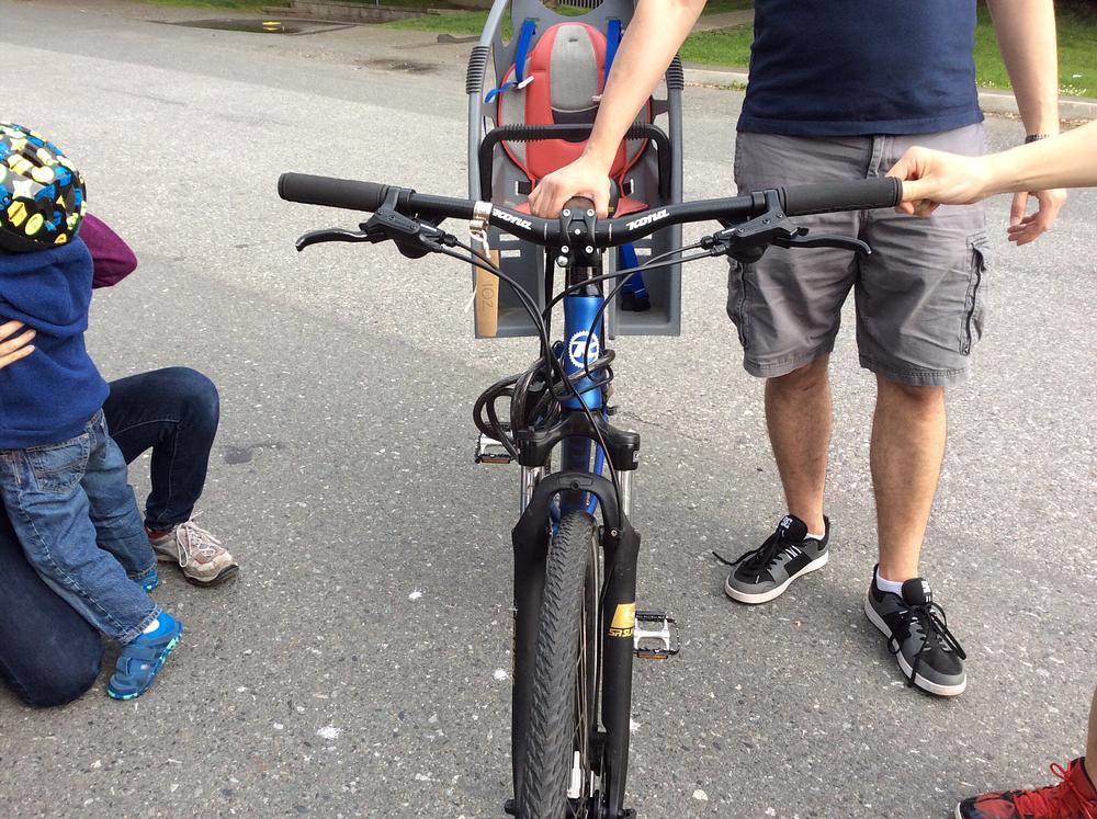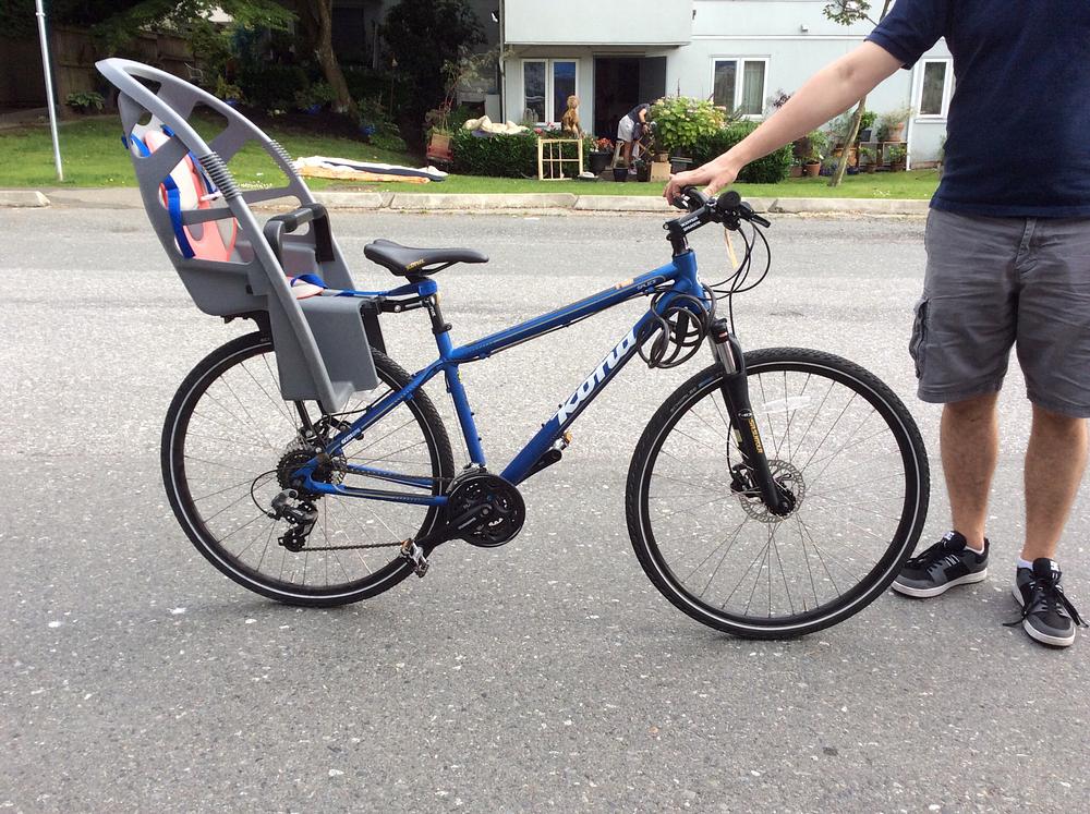 The bike had a gray child seat on back